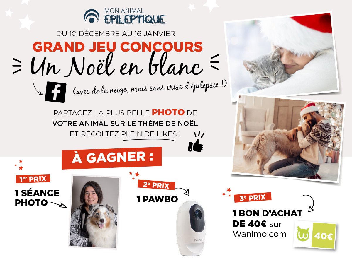 Mon Animal Epileptique organise, du 10 décembre 2018 au 16 janvier 2019, un grand concours-photos sur le thème “Un Noël en blanc”. Un Noël en blanc pour Mon Animal Epileptique, c’est l’idée, à la fois, d’un Noël avec de la neige pour le côté doux et pur de cet élément et aussi d’une période de fêtes calme, sans crise d’épilepsie pour nos chers compagnons à 4 pattes.