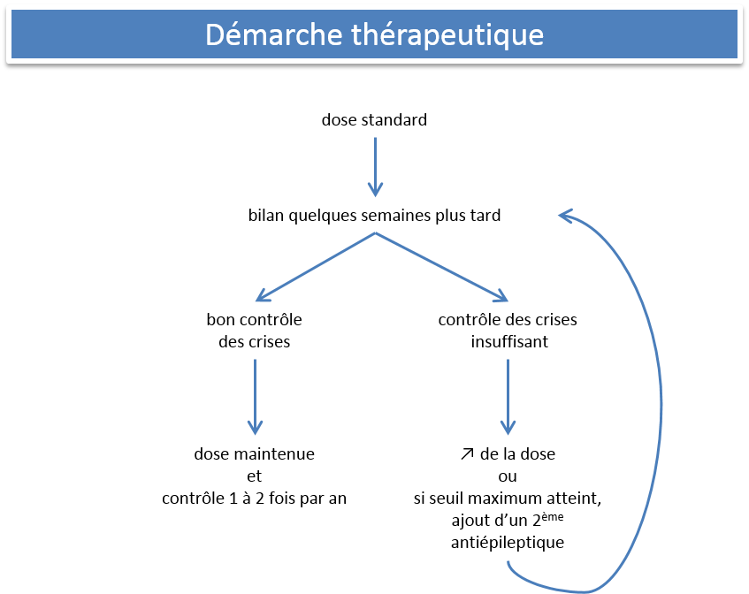 Une fois que le traitement mis en place permet un bon contrôle des crises par rapport à l’objectif fixé tout en étant bien toléré, les visites chez le vétérinaire pourront être plus espacées. Néanmoins, un suivi vétérinaire régulier, de 1 à 2 visites par an, restera nécessaire afin de vérifier que l’efficacité et la tolérance sont toujours satisfaisantes (cf. Schéma démarche thérapeutique).